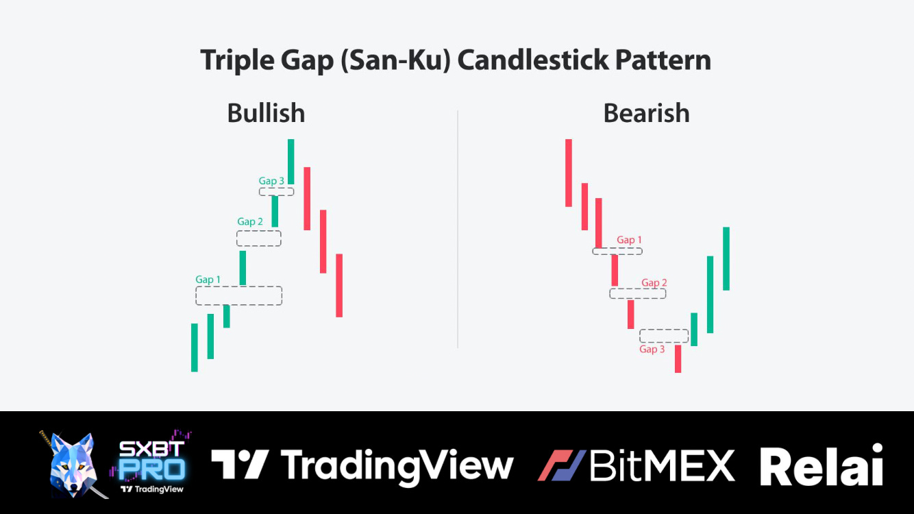 The San-Ku, also known as the Three Gap or Triple Gap pattern, is a technical pattern to identify potential trend reversals. It appears on price charts and signifies a significant shift in market sentiment.
